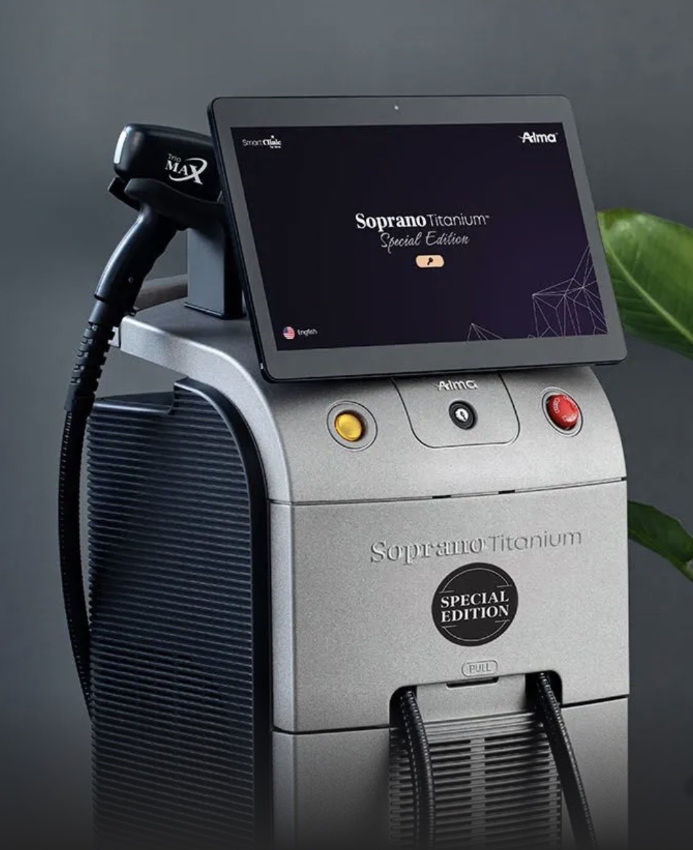 Alma Soprano Titanium uses advanced 3D Technology, which combines three highly effective laser wavelengths (755nm, 810nm, and 1064nm) into a single applicator. These wavelengths target hair follicles at different skin depths and anatomical structures simultaneously, allowing for comprehensive and precise treatment.
